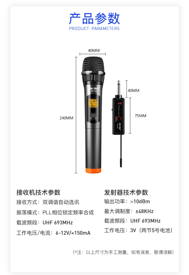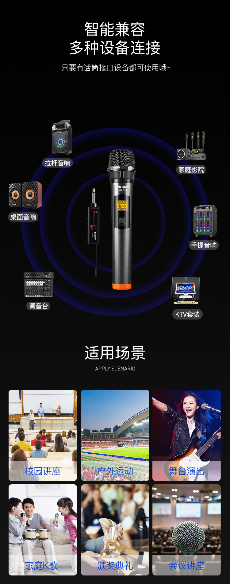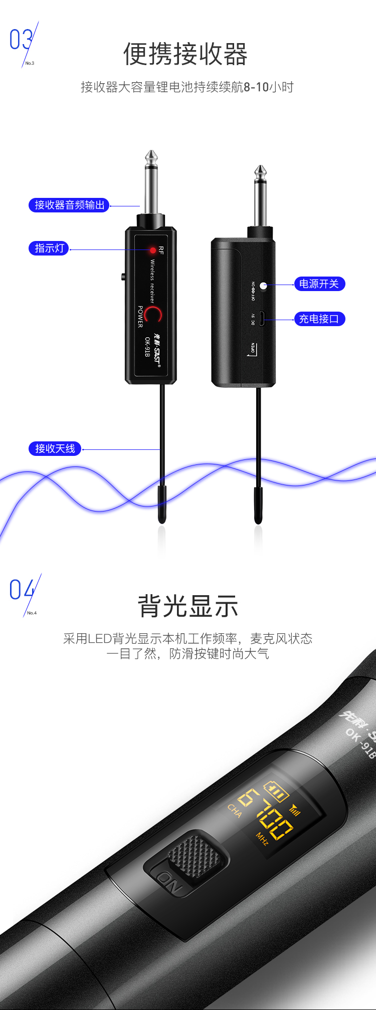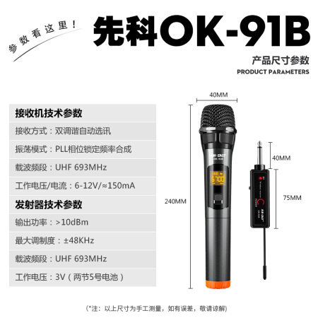 先科 SAST OK-91 無線麥克風 話筒接收器家庭KTV會議K歌卡拉OK唱歌主播網絡電教演講戶外插音響音箱 黑