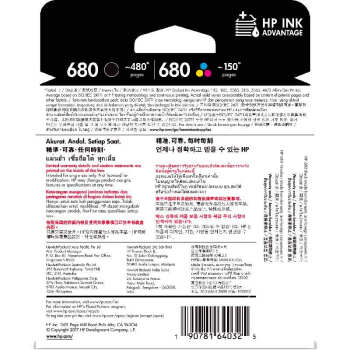 惠普(HP)680原裝墨盒 適用hp 2138/2677/3636/3638/3838/3776/3777/3778/4678/5078/5088打印機(jī) 黑彩墨盒