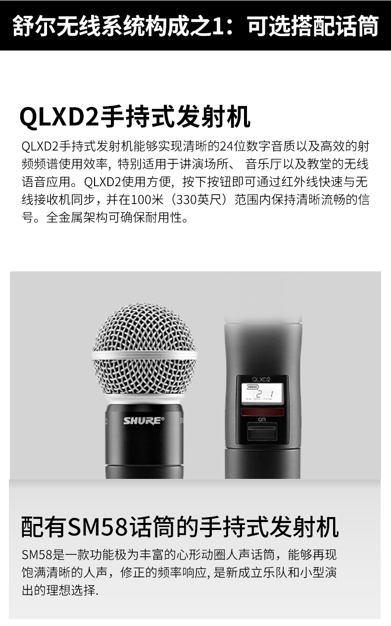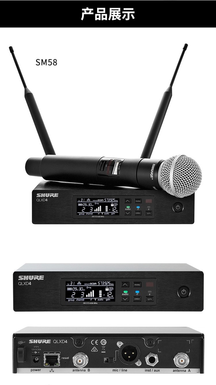 舒爾(SHURE)QLXD24/SM58 數(shù)字無線一拖一話筒 舞臺(tái)演出會(huì)議主持麥克風(fēng)