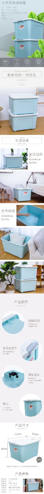 禧天龍 X6154 整理箱 帶蓋整理箱 110L 藍色 75*530*445mm
