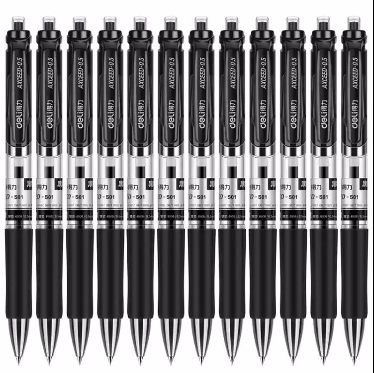 得力(deli)0.5mm按動(dòng)中性筆辦公簽字筆 子彈頭黑色12支/盒 辦公用品S01