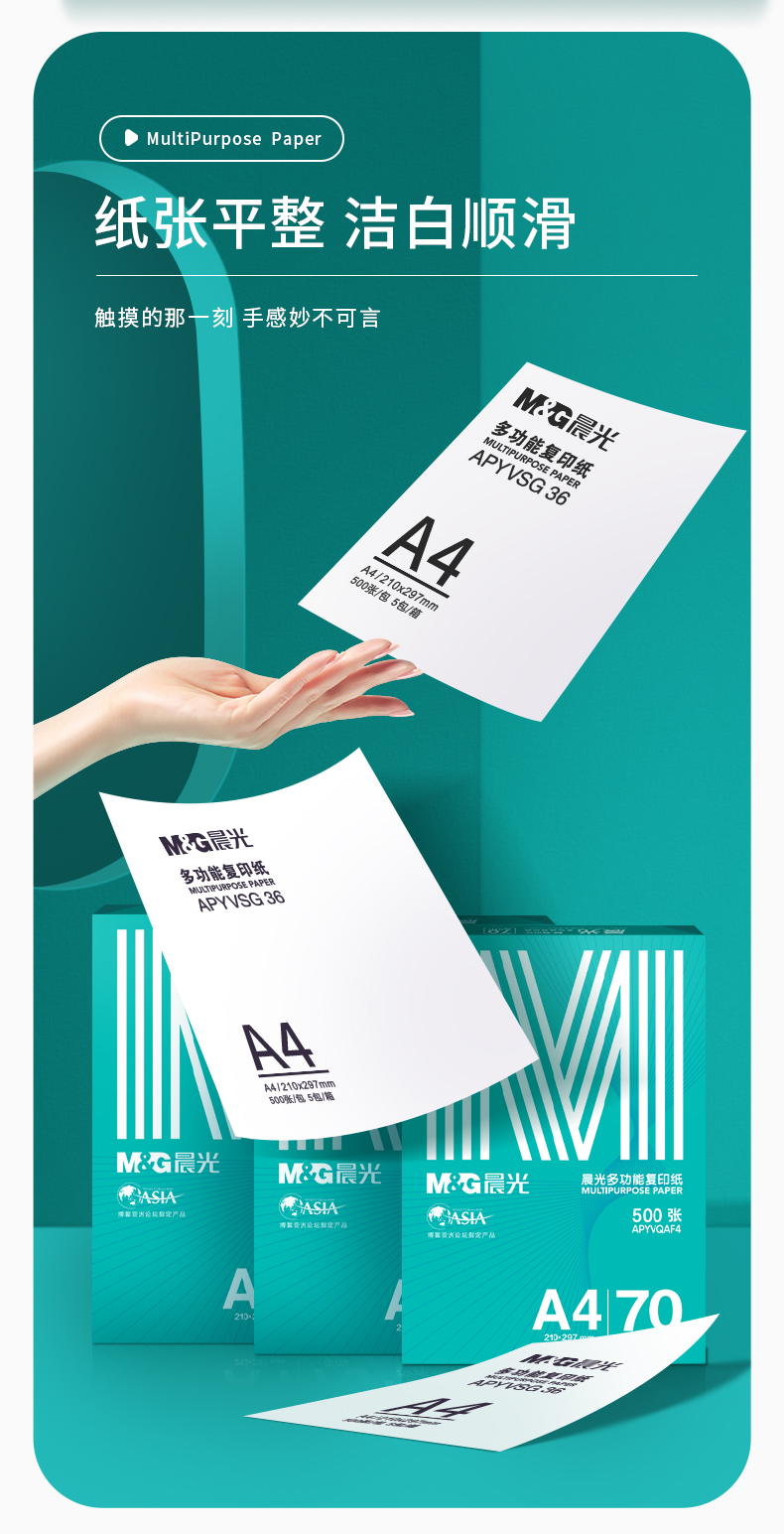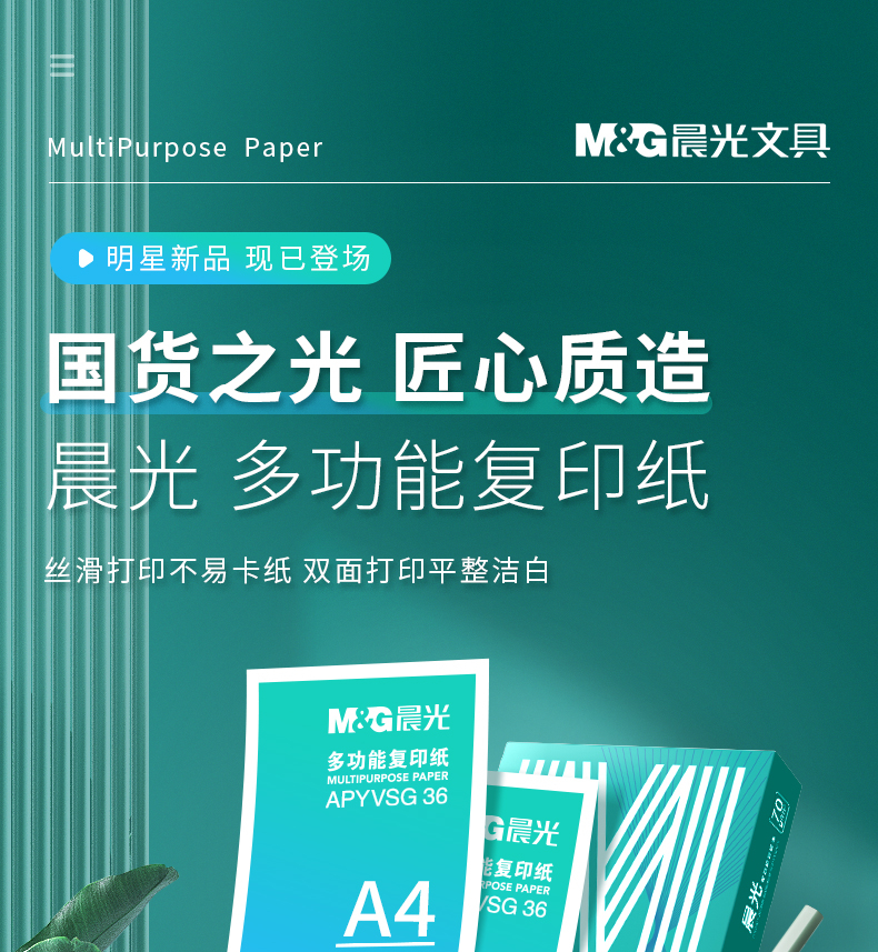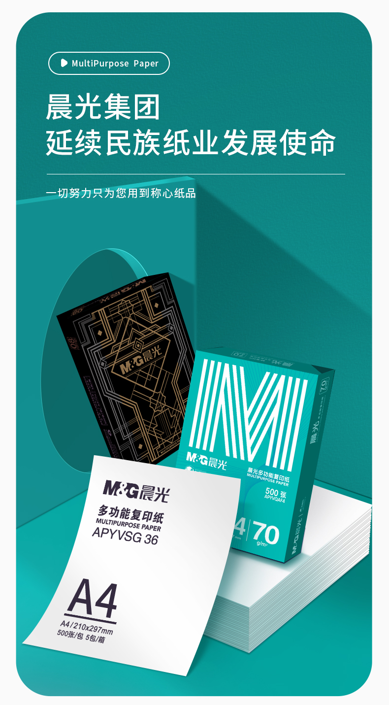 晨光(M&G)綠晨光 A4 70g 多功能雙面打印紙 高性價(jià)比復(fù)印紙 500張/包 5包/箱(整箱2500張) APY61AF9