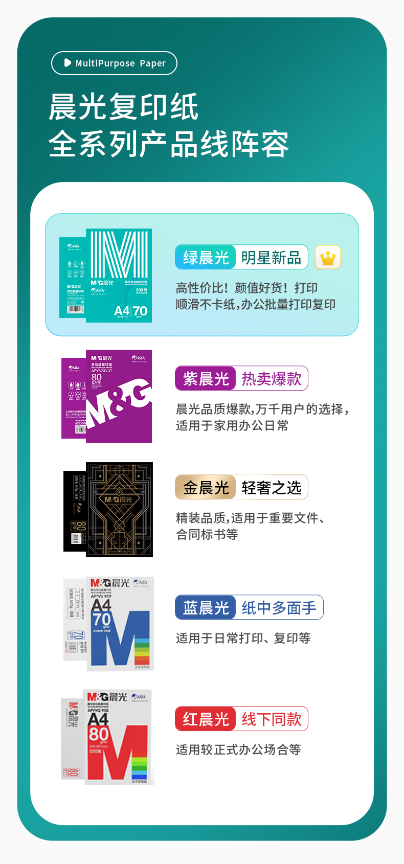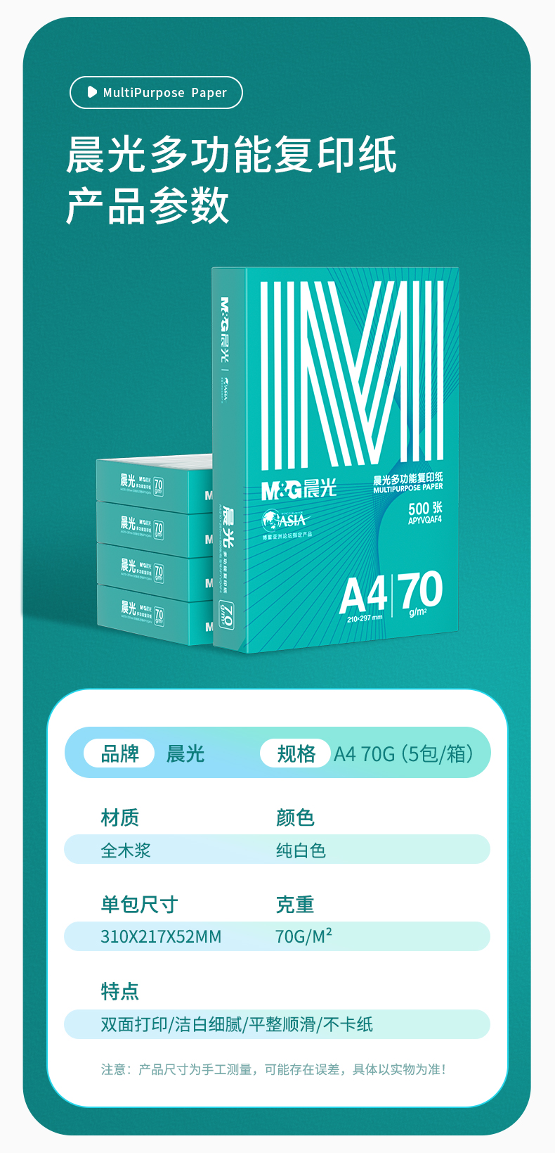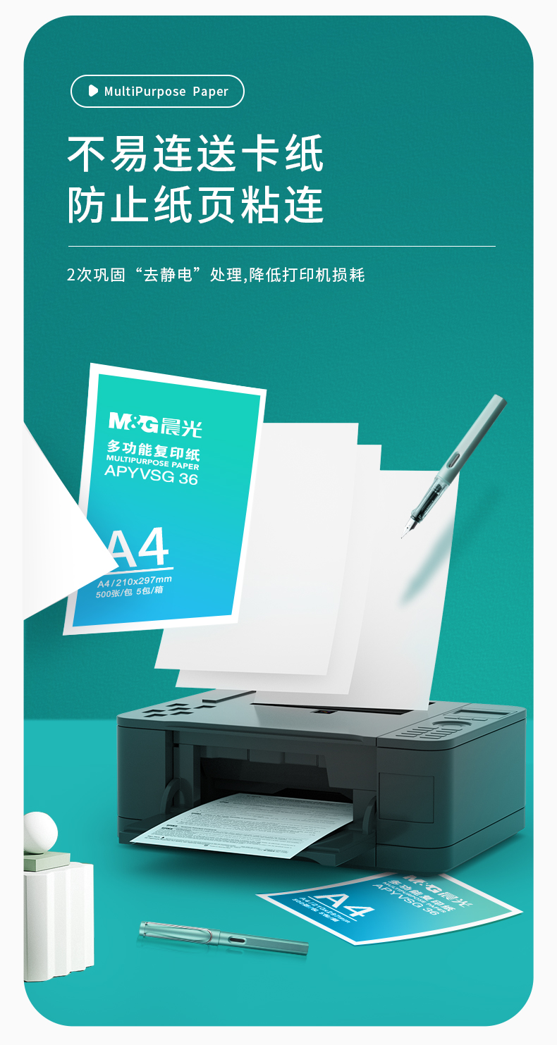 晨光(M&G)綠晨光 A4 70g 多功能雙面打印紙 高性價(jià)比復(fù)印紙 500張/包 5包/箱(整箱2500張) APY61AF9
