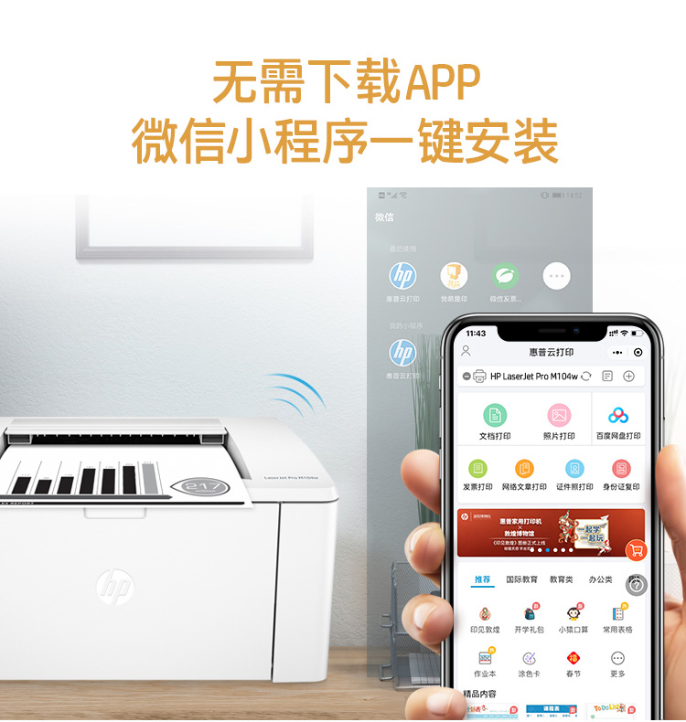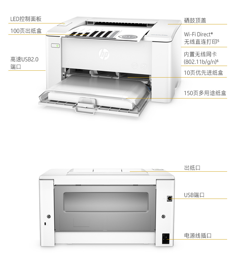 惠普(HP)M104w黑白激光打印機(jī) 無線 手機(jī)打印 家用 小型辦公 P1108/1106升級wifi版