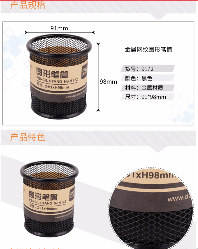 得力9172筆筒(黑)(只)